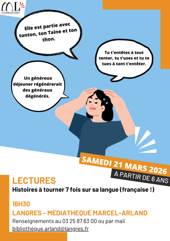 • Condition d'accès Public familial Départ 15h à la Médiathèque Marcel-Arland Renseignements & inscription : 03 25 87 63 00 bibliotheque.arland@langres.fr Gratuit