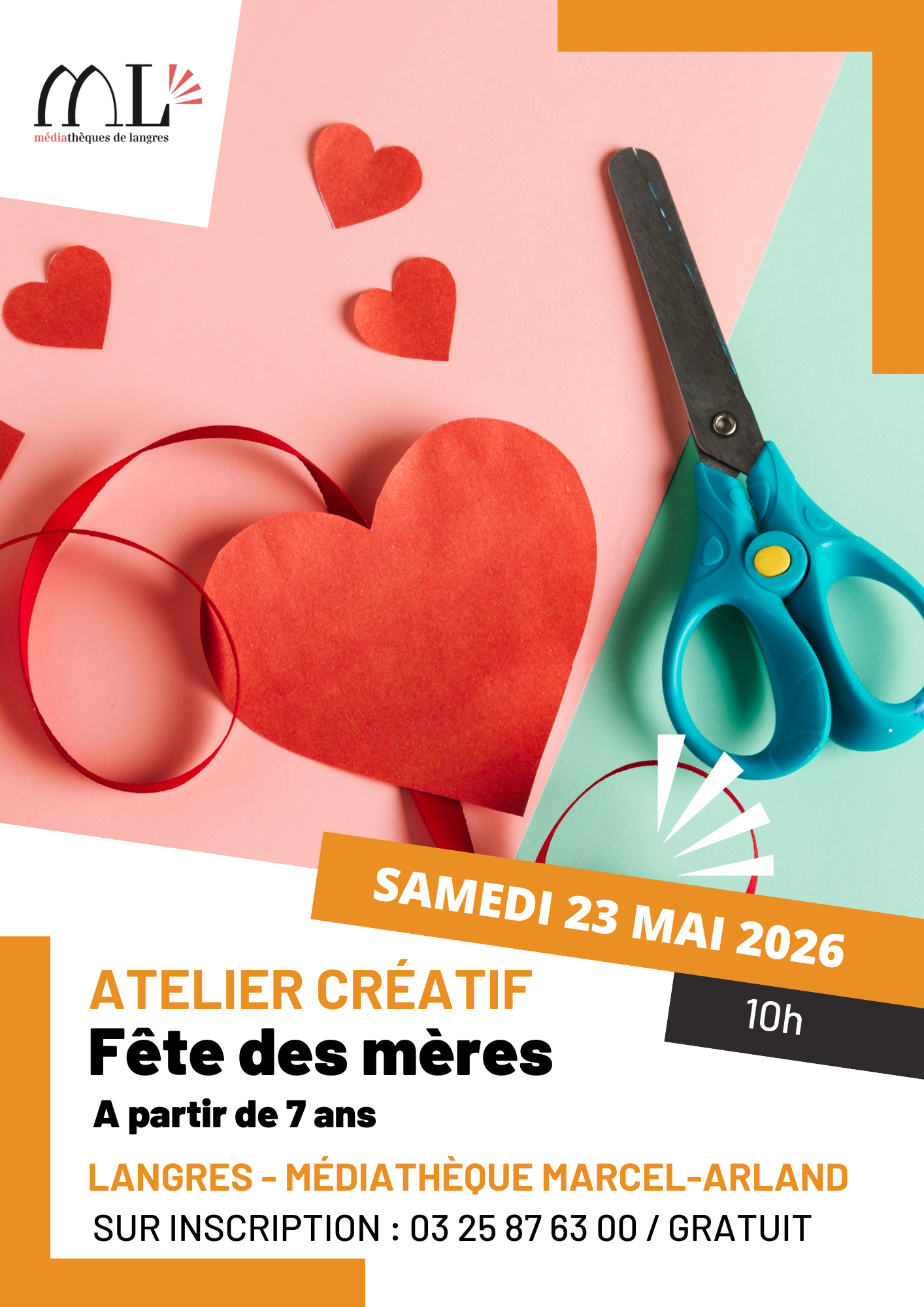 Participez à un atelier créatif et ludique spécialement imaginé pour célébrer les mamans. Une belle occasion de partager un moment de complicité et de repartir avec une jolie création faite avec le cœur. A partir des ouvrages de loisirs créatifs de la médiathèque, laissez-vous guider par le personnel de la bibliothèque pour réaliser vos plus belles créations.