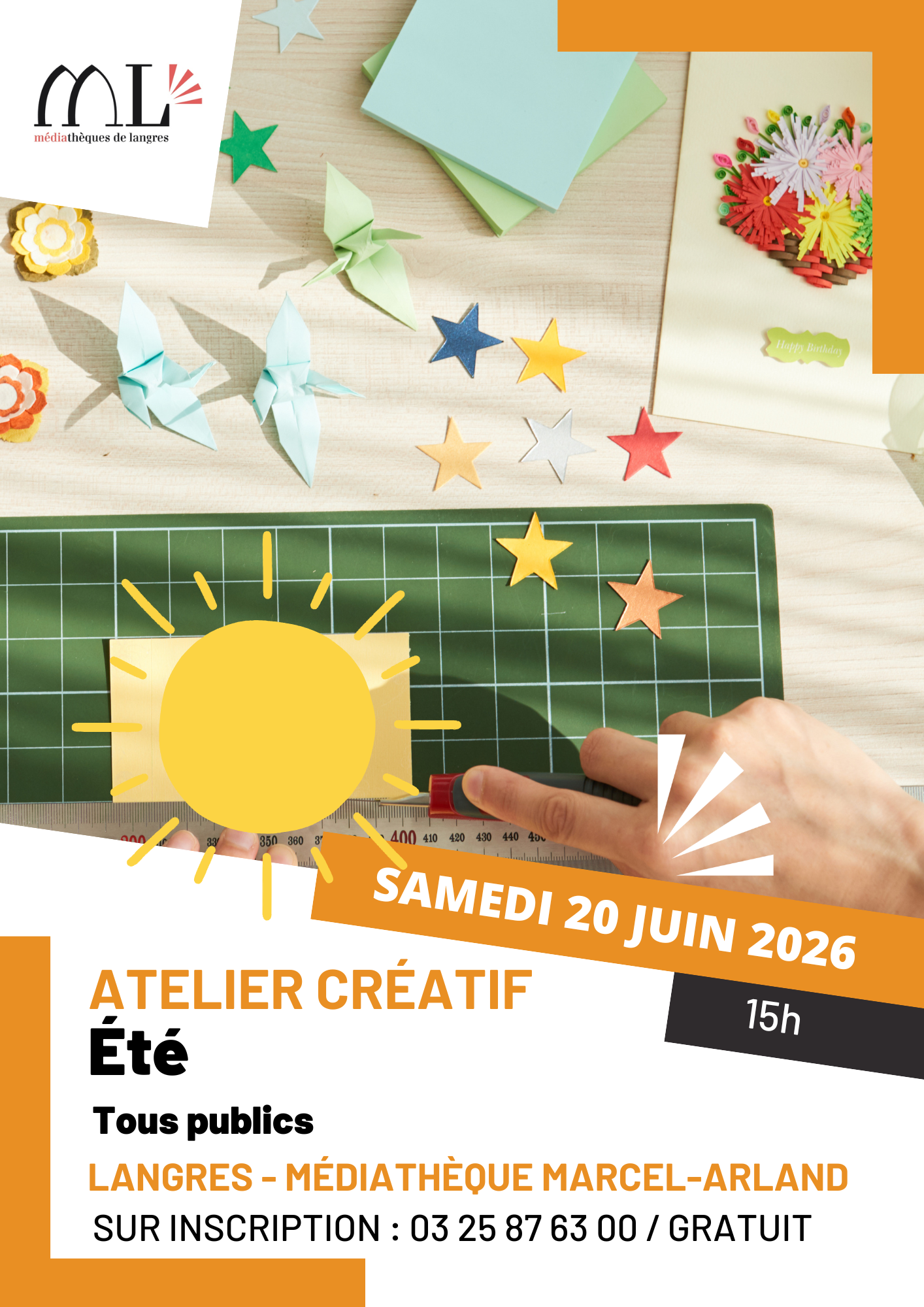 Un atelier pour laisser parler sa créativité. Préparez vos ciseaux : pour les artistes en herbe, l’été est une vraie source d’inspiration ! A partir des ouvrages de loisirs créatifs de la médiathèque, laissez-vous guider par le personnel de la bibliothèque pour réaliser vos plus belles créations.